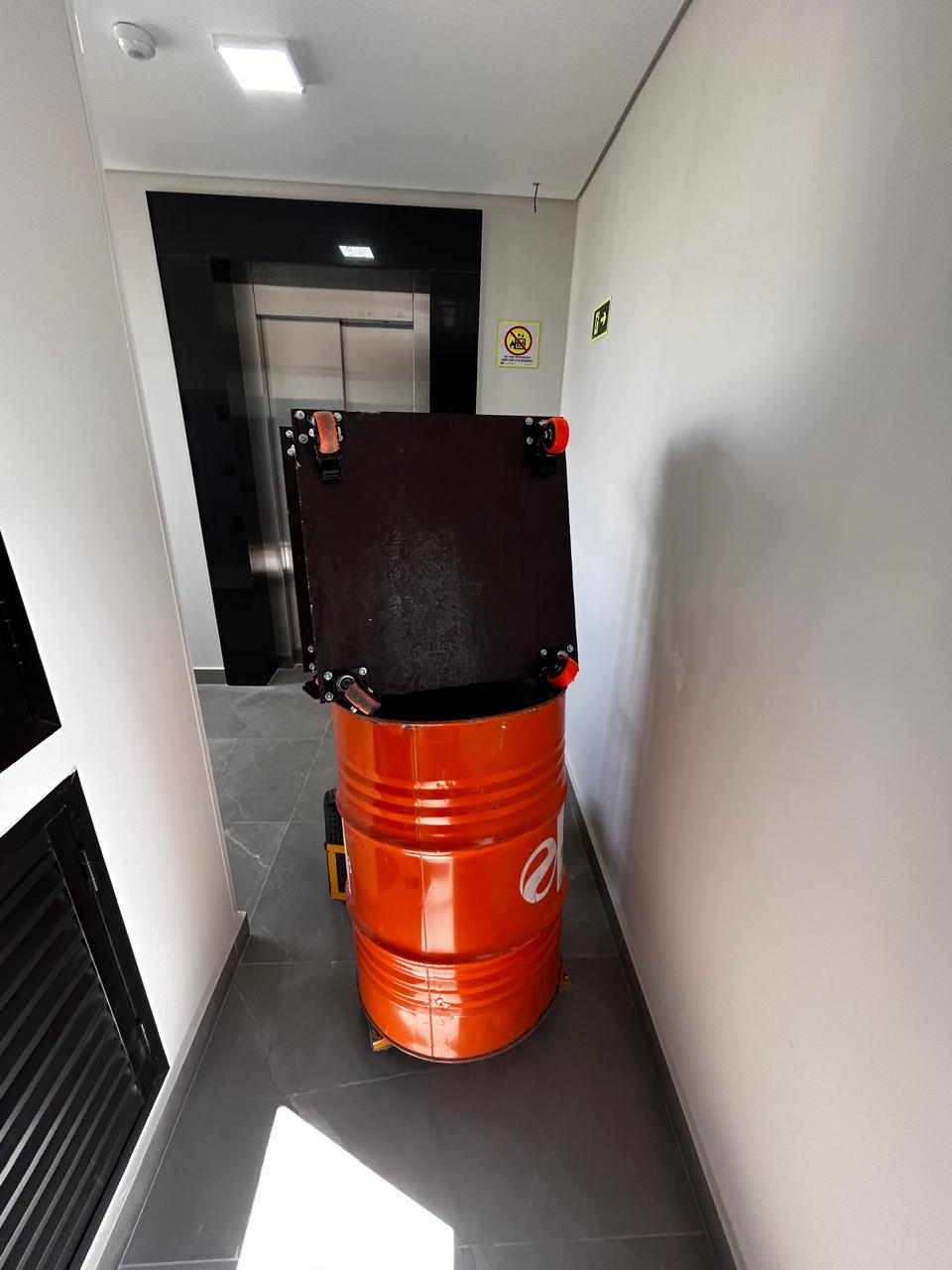 Após entregue, ficará o tambor e uma base móvel com o cliente, facilitando o uso.